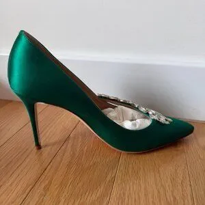 Nadira Green Satin Jewel Buckle Pumps