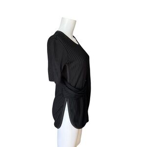 3.1 Phillip Lim Short Sleeve Ribbed Tie Front Shirt Black Womens Size Medium