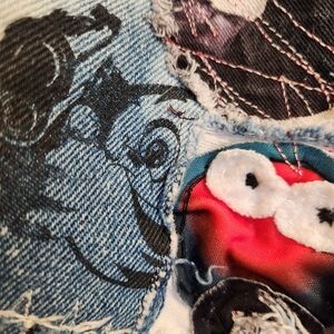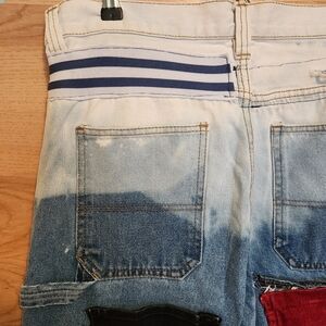 It's wearable art! If you love upcycled streetwear, these are AMAZING jeans!! From artist up cyclers Quixotica, these are one-of-a-kind. Think goth, urban, festival, unique, artistic expression! Highly distressed. There is one larger intentional hole in the leg which looks like it can easily be sewn shut if you didn't want a hole. See all the close up photos. These would look amazing with combat boots, such as the Palladium Revolts in my closet.