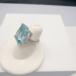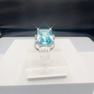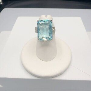 Aquamarine CZ Silver Tone Cocktail Ring Size 6 to 10