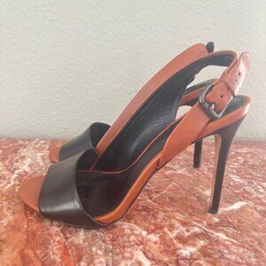 Coach Brown and Black Leather Slingback High Heel Sandals