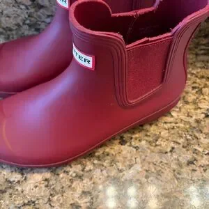 Hunter Original Chelsea ankle boots. These are a size 8 and the color maroon. Overall good condition.