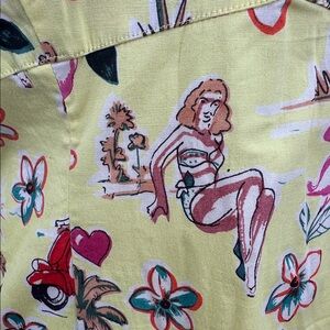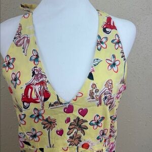 Temptation Yellow Halter Midi Dress Retro Hula Dancer Novelty Print Tropical M