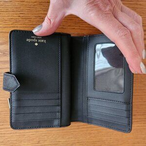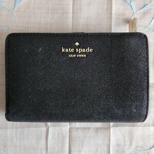 KATE SPADE NEW YORK GLITTER FABRIC AND SAFFING LEATHER TRIM BIFOLD WALLET
