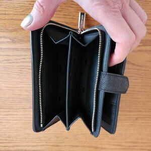Features: Front Logo Decoration, Card Slots (9), L Zip , Interior (2) Pockets, Full Length Bill Slot(2), Coin Zip Pocket (2)
