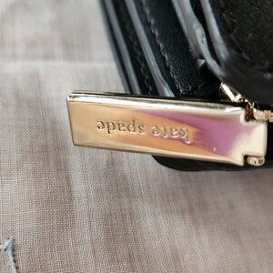 KATE SPADE NEW YORK GLITTER FABRIC AND SAFFING LEATHER TRIM METAL LOGO BIFOLD WALLET