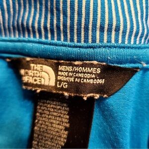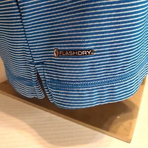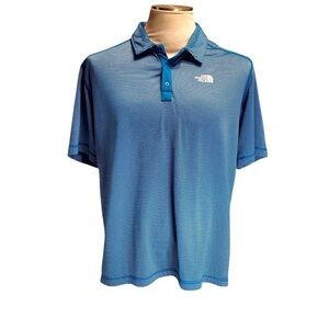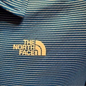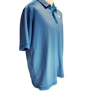 North Face Polo Shirt Men's Size L Flashdry Blue Short Sleeve With White Stripes