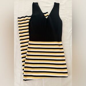 Fashion Nova Black and Yellow Striped Midi Dress Body Con Size XL Womens