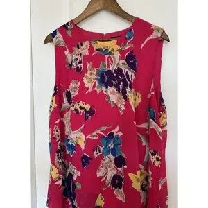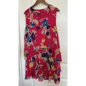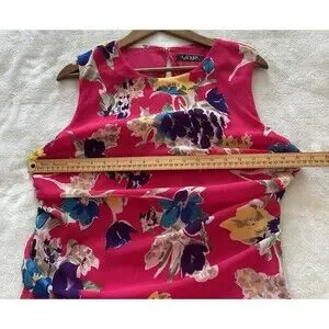 Ralph Lauren Womens 16 Pink Floral Dress Flowy Ruffle Hem Sleeveless Gerogette