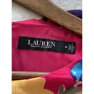 Lauren Ralph Lauren Womens Dress SZ 16 Pink Floral Flowy Ruffled Tier Georgette Feminine