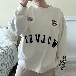 darc sport wolves crewneck! size large does have some flaws (slight pit stains, pilling, and some staining throughout) all pictured!
