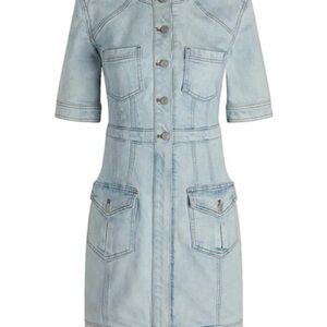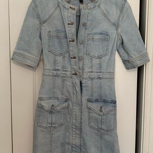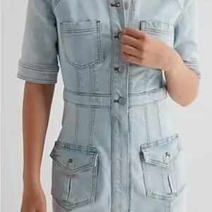 Chic vintage denim dress with padded shoulder. Features classic stitching and Express branding. Front zip skirt and buttoned torso. Size XS but will fit a small, better suited for a size 2/4 or a smaller size 6. New without tags. Bought for myself and it fits but it gapes a little at the bust area for me. I’m usually a size 6.