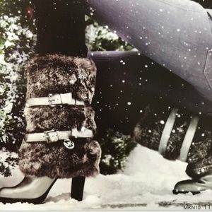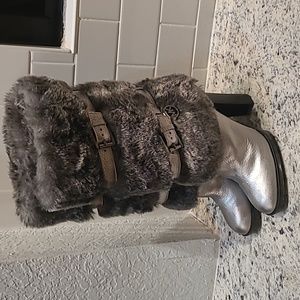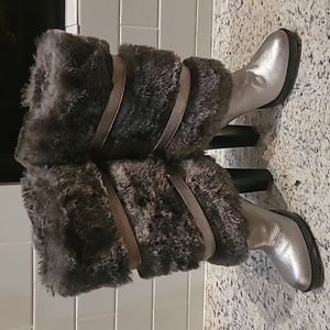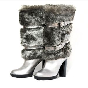 WOMENS MICHAEL KORS GUNMETAL SILVER CARLIE FUR BOOTS SIZE 8.5