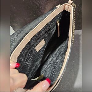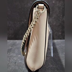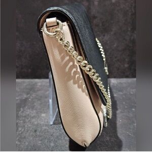 Beautiful and versatile Kate Spade New York Laurel Way Greer bag in a chic black and light pink (Warm Vellum) colorblock. This bag features a convertible design that can be worn as a crossbody, shoulder bag, or carried as a clutch by tucking in the chain.