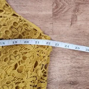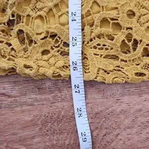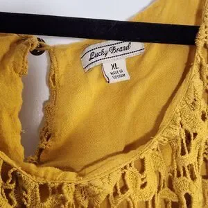 Lucky Brand Women's Crochet Lace Boho Mustard Yellow Sleeveless Tank Top Size XL