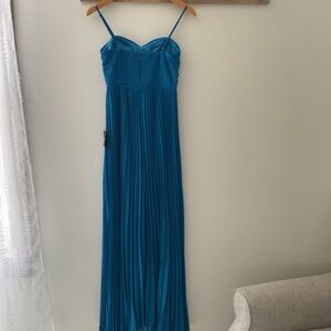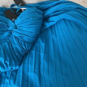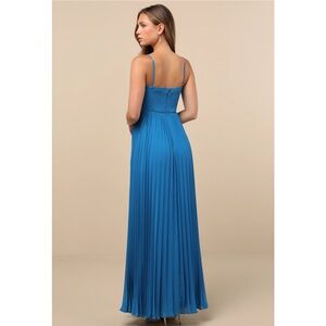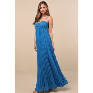 Lulus Jolette Blue Pleated Knot-Front A-Line Skirt Chiffon Maxi Dress NWT Small