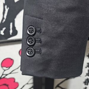 Elegant black blazer. Sleek design with notched lapels. Perfect for formal occasions. Functional pockets. Feels thick!