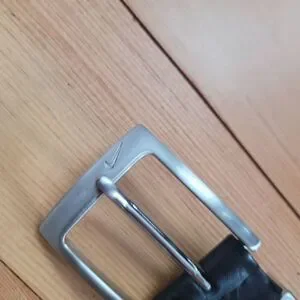 Nike black pebbled leather belt silver buckle preppy everyday neutral