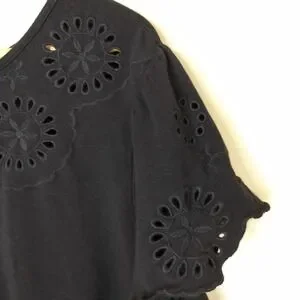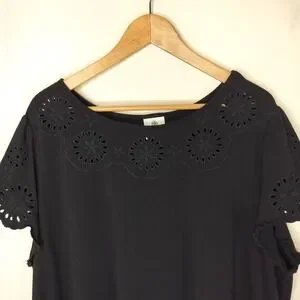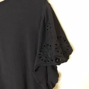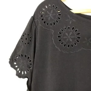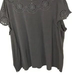 Laurie Felt black floral embroidered short sleeve top. Size 3X. Rayon, cotton, spandex. (25267)