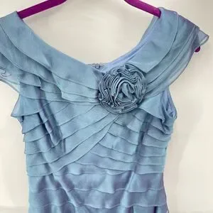 London Times Womens Flower Dress Knee Length Layered Lined Pale Dress 6 Petite