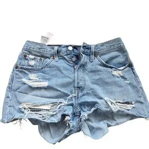 Levi's 501 Shorts Womens Button Fly Cutoff Denim Jean Distressed. In good condition