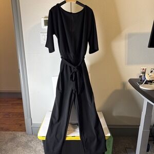 Women's Jumpsuit Black Short Sleeve With Belt Size L