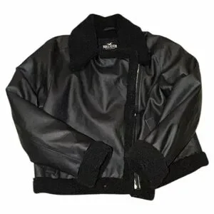 #bikerjacket #fauxleather #sherpa #hollister #NWT #veganleatherjacket