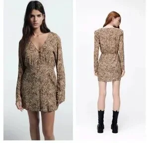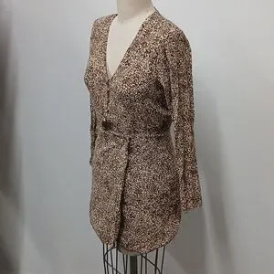 Zara Button Front Wrap Print Mini Dress/ Size L