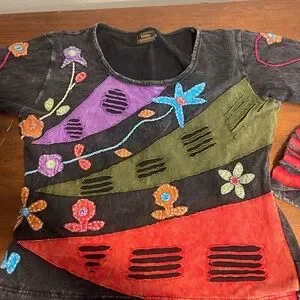 Rising International Boho Patchwork Long Sleeve Top Cotton Nepal M Distressed