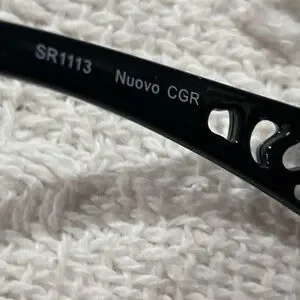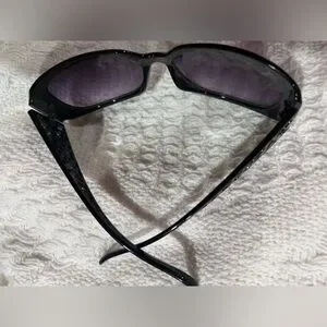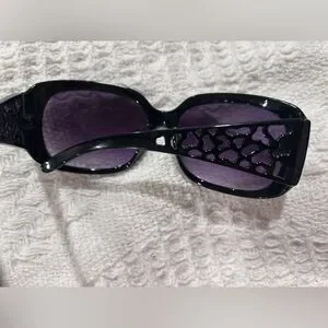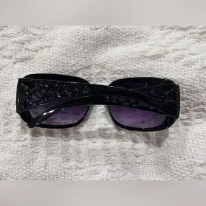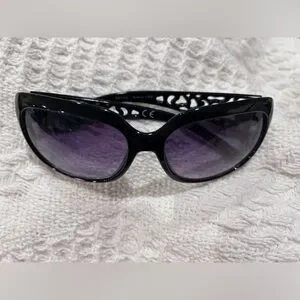 Chic black frame with purple-tinted lenses. Decorative cutout detailing on the arms. Lightweight and easy to wear. Ideal for everyday style.