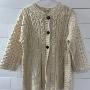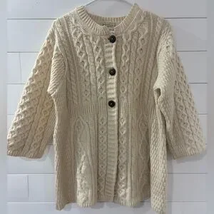 Kilronan Knitwear Merino Wool Cable Knit Cardigan Sweater Ireland L