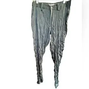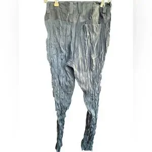 Super slim high waist Issey Miyake wrinkled black trousers, side hip pockets and back pockets. 100%Poly Coveted . Made in Japan Small