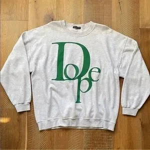 Elevate your look with this DOPE crewneck sweater. Features a classic gray base and striking green logo.