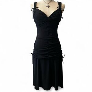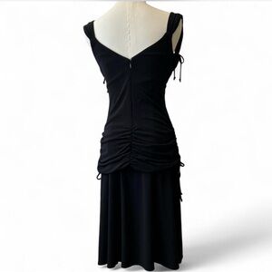 y2k Goth Babydoll Black Bow Ruched Midi Prom Dress Laundry Shelli Segal Size 6
