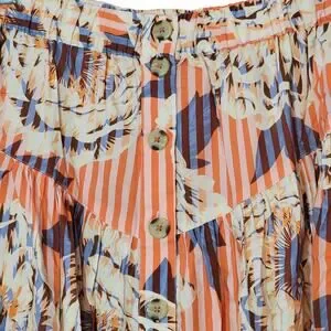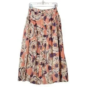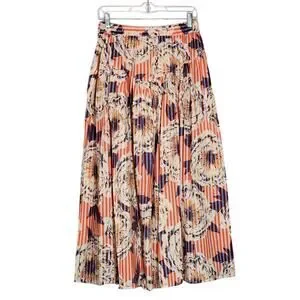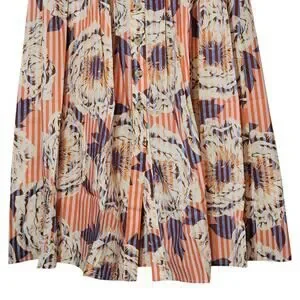 By Anthropologie Stripe Floral Button Front A-Line Midi Skirt Cotton Red Blue S