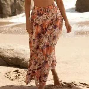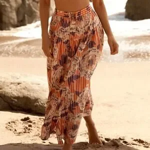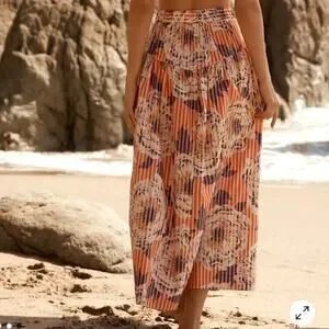 Beautiful By Anthropologie stripe floral midi skirt in red, blue and white. Flowy full silhouette with a flattering A-line shape, designed with a comfortable elastic waistband and button front detail. Lightweight 100% cotton with an easy pull-on style—perfect for everyday wear, vacation, or effortless feminine looks.