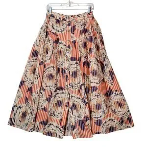 Anthropologie Stripe Floral Button Front A-Line Midi Skirt Cotton Red Blue S