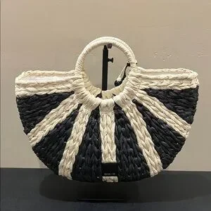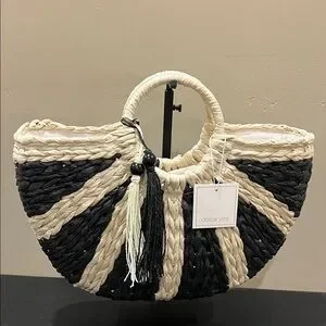 Dolce Vita | Black Raffia Shopper “EstelleB” Tote ~ Canvas Inside