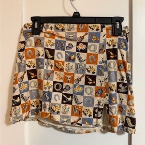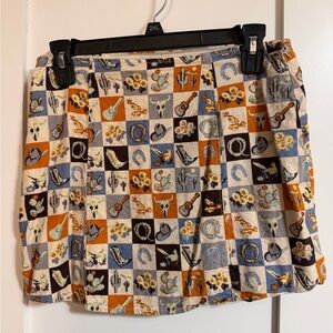 Chic patchwork mini skirt by Urban Outfitters. Features playful orange, blue, and cream squares. Perfect for casual outings.