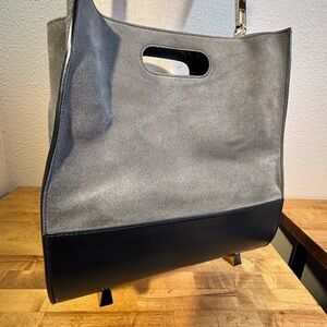 • Exterior: The grey suede shows natural rubbing and nap disturbance typical of the material. The black leather base has light scuffs.