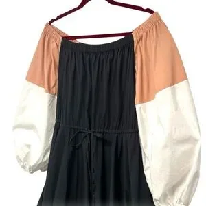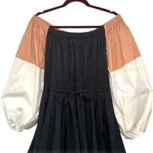 Staud Juliet Colorblock Off The Shoulder Cotton Bubble Hem Puff Sleeve Dress S