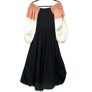 Staud Juliet Colorblock Off The Shoulder Cotton Bubble Hem Puff Sleeve Midi Dress Women’s Small