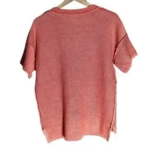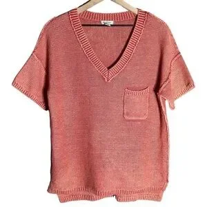 Sundance V neck short sleeve sweater Coral color Size small 100% cotton Good condition