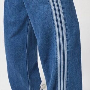 adidas Men's Denim Track Jeans in Blue with Side Stripes