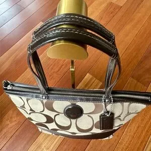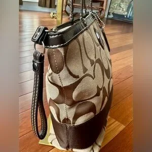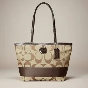 Coach Signature Monogram Khaki/Brown Stripe Tote/Shoulder Bag