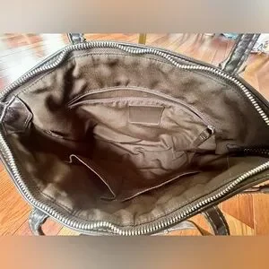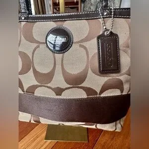 Coach Signature Stripe Tote/shoulder bag and khaki/brown. Includes leather coach hangtag.