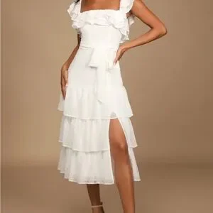 Lulus Dear To My Heart White Swiss Dot Tiered Ruffled Midi Dress