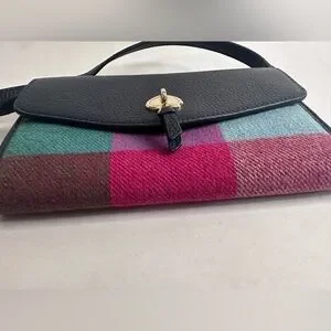 Kate Spade Marti Wallet Crossbody Bag - Multicolor Plaid and Navy Leather (NWOT)