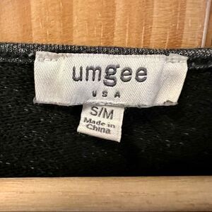 Umgee heathered grey black lace up tie ruffled sleeve tunic shirt top small medium S/M