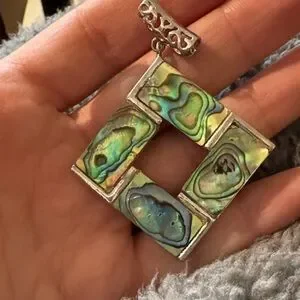 Elegant silver pendant featuring vibrant abalone shell accents. Perfect for adding a touch of color to any outfit.